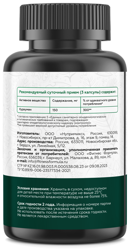 | Куркумин | 150 мг | 300% |