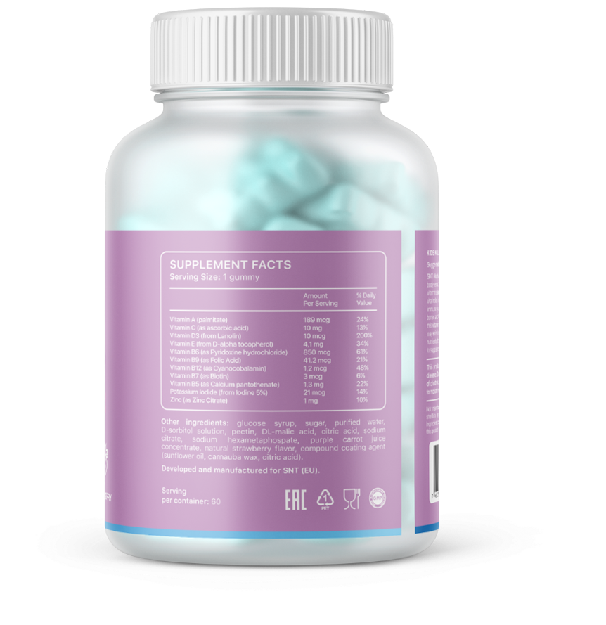 Kids Multivitamin Gummies - это комплексный продукт, разработанный специально для детей, который содержит витамины и минералы в биодоступных формах. Например, цинк представлен в форме цитрата, витамин А - в виде пальмитата, что обеспечивает лучшую усвояемость и эффективность, а также позволяет быстро и без побочных эффектов компенсировать дефициты микроэлементов в рационе современного ребенка.