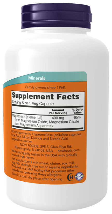 NOW Magnesium 400 mg, 180 капсул