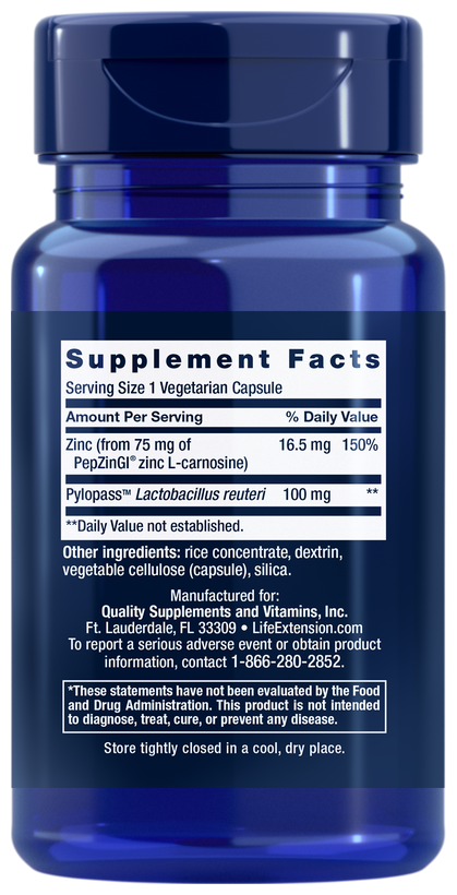 В вашем желудке содержится соляная кислота, которая помогает вам расщеплять продукты, которые вы едите. Эта кислота повредила бы нежную слизистую оболочку стенки желудка, если бы не защитное покрытие из слизи. Gastro-Ease содержит уникальную форму цинка, а также Pylopass, уникальную, термообработанную, стабилизированную форму Lactobacillus reuteri, которая поддерживает защитный слой желудка.